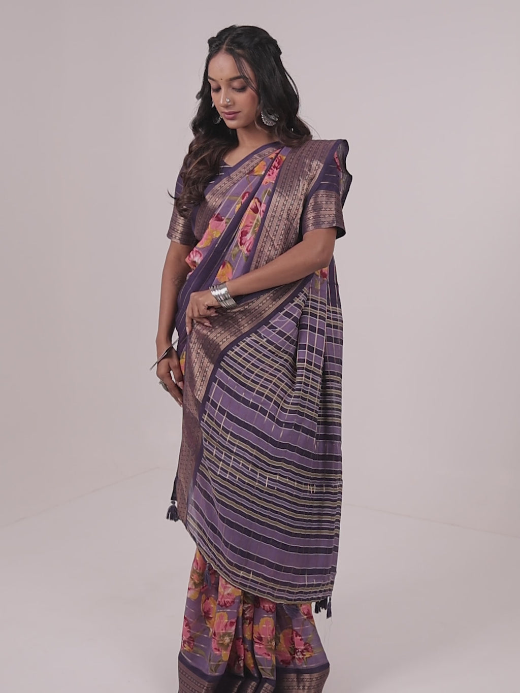 Marshmello Georgette Weaving Jari Pattern With Up Down Print